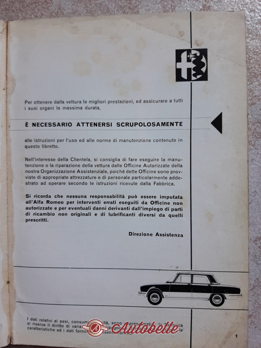 ALFA ROMEO 1750 uso e manutenzione anno pubblicazione N. 1316 gennaio 1968 condizioni ORIGINALI tutte le pagine presenti completo di schema impianto elettrico vendesi nello stato in cui si trova euro 30 piu eventuali spese di spedizione visibile e ritirabile prov. BOLOGNA per ulteriori info tel --BLOCKED-- PER ALTRO MATERIALE ALFA ROMEO/LANCIA/FIAT/AUTOBIANCHI telefonare grazie