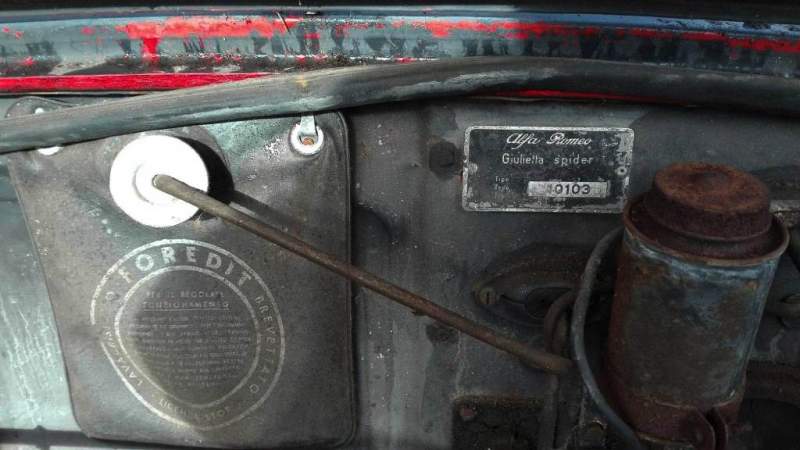 Alfa Romeo Giulietta Spider type 10103, year 1961, U.S.A. car restoration with regular documentation suitable for the new registration.
