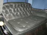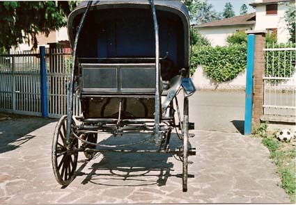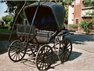 Carriage year 1800, totally restored, mudguards in leather sewn to amno as in origin.