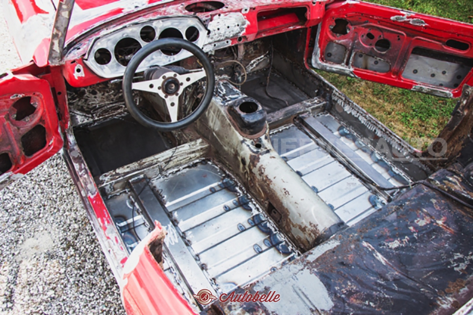 The car arrived to us complete, but it required bodywork. We therefore decided to disassemble it and rebuild the body, which is now ready for painting. As seen in the photos, the floors are new, and the body has been fully restored. The chrome has been refinished and the metal parts have been zinc-coated, while the mechanical components have been overhauled.