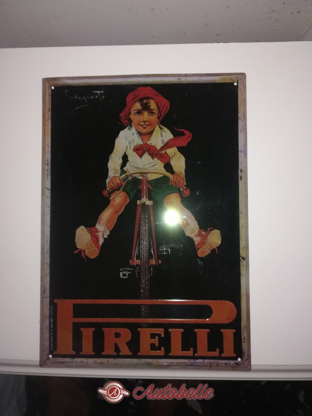 insegna pubblicitaria in metello pirelli in perfette condizioni , dimensioni 34x24, + spese di spedizione