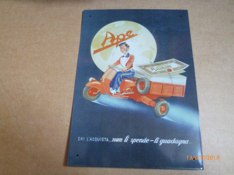 DO NOT BE DISAPPEARED THIS GIFT IDEAS FOR A FRIEND OR A PASSIONATE FAMILY OR YOURSELF This is APE PIAGGIO metal plate with written APE IN…ID: 283581 | 21/01/2019 | Bologna