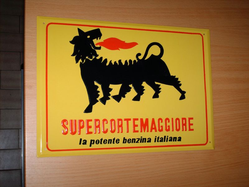 This is a metal plate SUPERCORTEMAGGIORE THE NAME AS THE AGIP WAS CALLED with writing SUPERCORTEMAGGIORE, DRAGO IN SIX ZAMPE and embossed…ID: 284506 | 11/02/2019 | Bologna