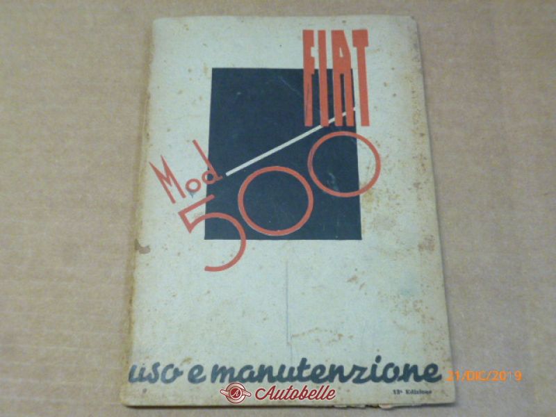 THIS IS A WONDERFUL USE AND MAINTENANCE BOOKLET FOR FIAT 500A TOPOLINO ORIGINAL. IN DISCREET STATE OF CONSERVATION SUITABLE FOR…ID: 295848 | 24/12/2019 | San Giorgio Di Piano