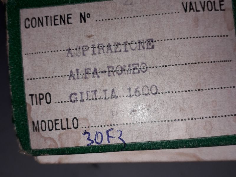 Vendo valvole aspirazione Alfa Romeo Giulia 1600 , marca Vera , fondo di magazzino , € 50 più spedizione .ID: 345538 | 03/12/2023 | Catanzaro