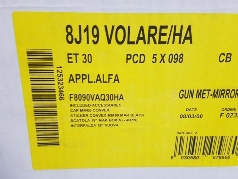 LIGHT ALLOY WHEELS MAK 8X19 ET 30 INTERAXIS 5X98 FIAT ALFA ROMEO ETC..147.156 GT ETC ... (new still packed as per photo OPPORTUNITY) Adaptable to…ID: 291424 | 16/08/2019 | Pesaro