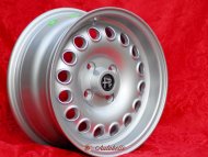 4 cerchi Alfa Romeo GTA 7x15 ET29 4x108 silver nuovi, di riproduzione, replica degli originali. Adatti a vetture Alfa Romeo 105 Coupe Spider GTA GTC Montreal. 3 anni di garanzia. Con certificati (certificato delle parti TUV / rapporto di forza TUV). Disponibile anche certificazione per la Svizzera. Possibile restituzione e rimborso per prodotti non usati e senza segni di utilizzo, negli imballi originali, secondo i termini di legge. Maggiori informazioni su cerchiepoca.com.