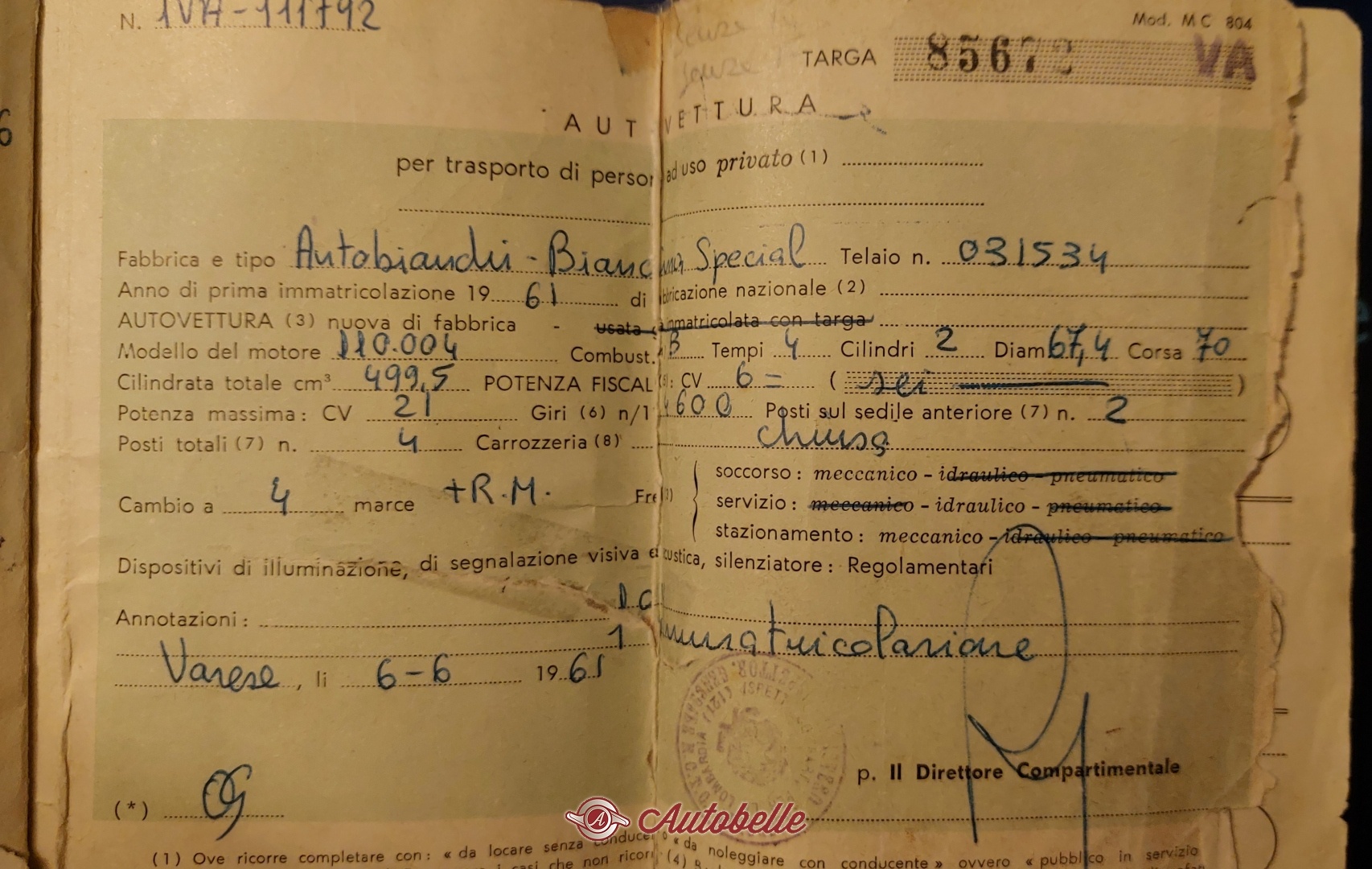 | Anno prima immatricolazione | 1962 |