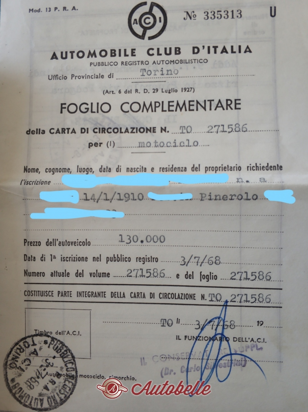 | Anno prima immatricolazione | 1968 |