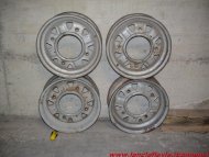 N° 4 cerchi hanno disegno uguale ma misure diverse, n° 2 misurano 4X12, gli altri 2 misurano 3,5X12. I cerchi singoli, quello con i fori quadrati misura 4X12, l'altro 4,5X12. I cerchi sono tutti integri, uno dei 4 a disegno uguale presenta delle saldature, alcuni, inoltre, hanno bisogno di essere ripristinati i bordi, praticamente riaddrizzati. Il lavoro di ripristino dei bordi e facilmente eseguibile in quanto si tratta di cerchi in ferro e non in lega. Per ulteriori info non esitate a contattarmi.