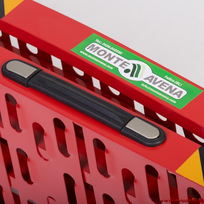Ogni rampa è fornita di cinghia di sicurezza con doppio gancio in metallo, ricoperto di materiale plastico e bloccaggio rapido.