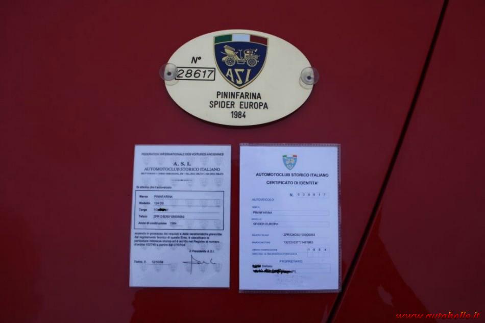 Fiat 124 Pininfarina Spidereupopa ASI Targa Oro (annuncio scaduto)