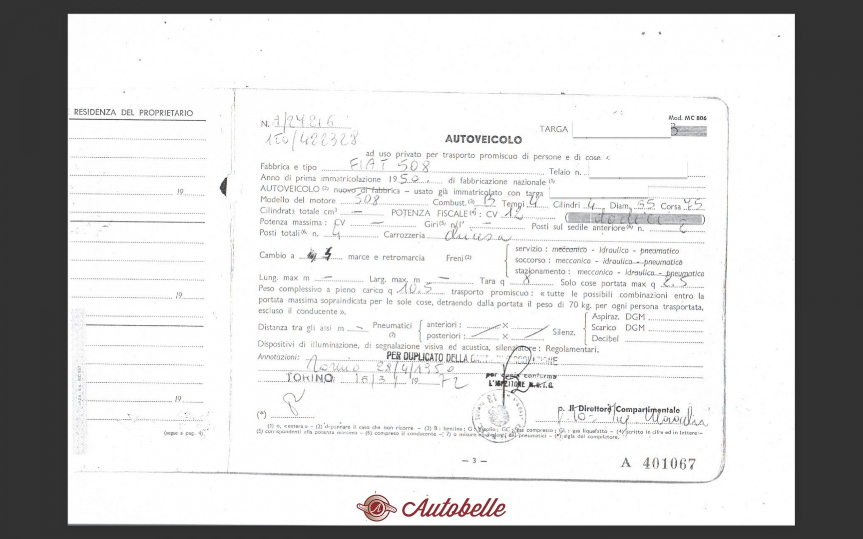 | Modello | 508 BALILLA (3M) BERLINA |