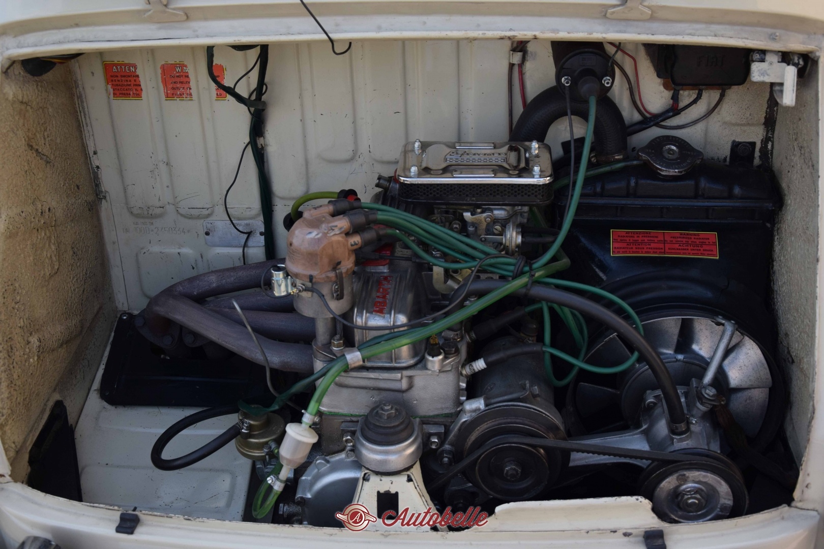 La macchina monta un motore preparato 850 Abarth, con pochissimi chilometri percorsi.