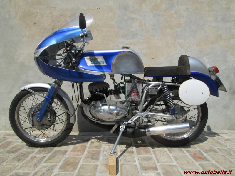 Serbatoio in alluminio battuto a mano, parafanghi in alluminio fatti a mano, accensione elettronica, cilindro BOL D'OR, cambio portato a sinistra, cupolino in vetroresina disegnato e costruito da me (disegno esclusivo), marmitta ad espansione, cerchi in alluminio, freni potenziati. Velocità massima effettiva 120 km/h