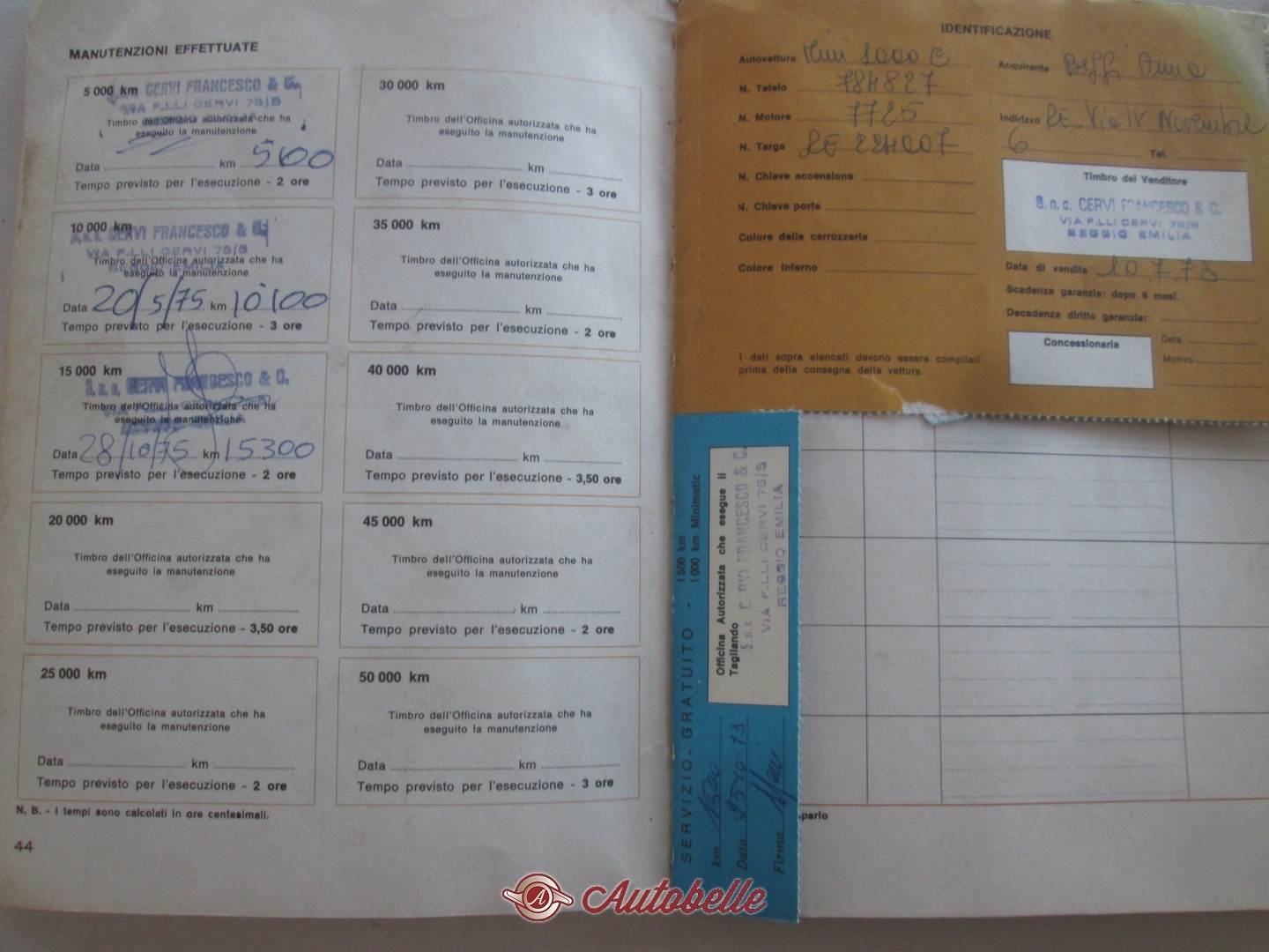 All'interno sono presenti anche i servizi tagliandi , 3 caselle sono compilate , le altre sono ancora in bianco