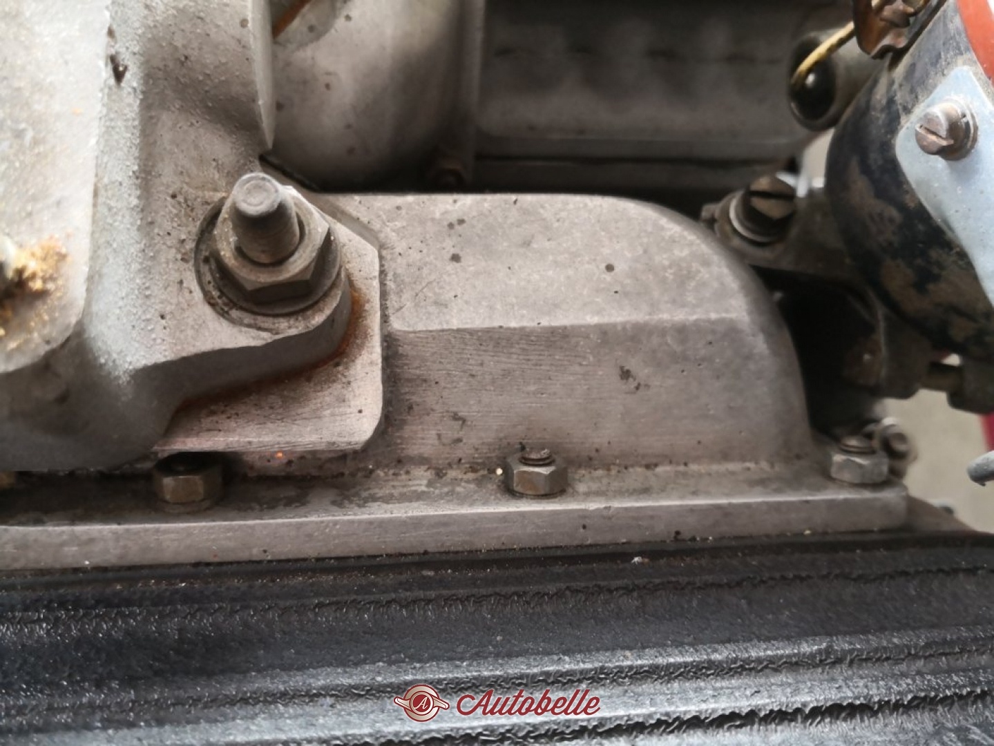 Lancia Aurelia Motore B2 002 , venduto nello stato in cui si trova , fissaggio collettori aspirazione alle testate a 5 prigionieri ( in quel periodo erano solitamente a sei ) datate fine 1951 ed inizio 1952 . Collettori di aspirazione non lavorati a " cuspide " , Croce di Malta su coperchio Catena di Distribuzione
