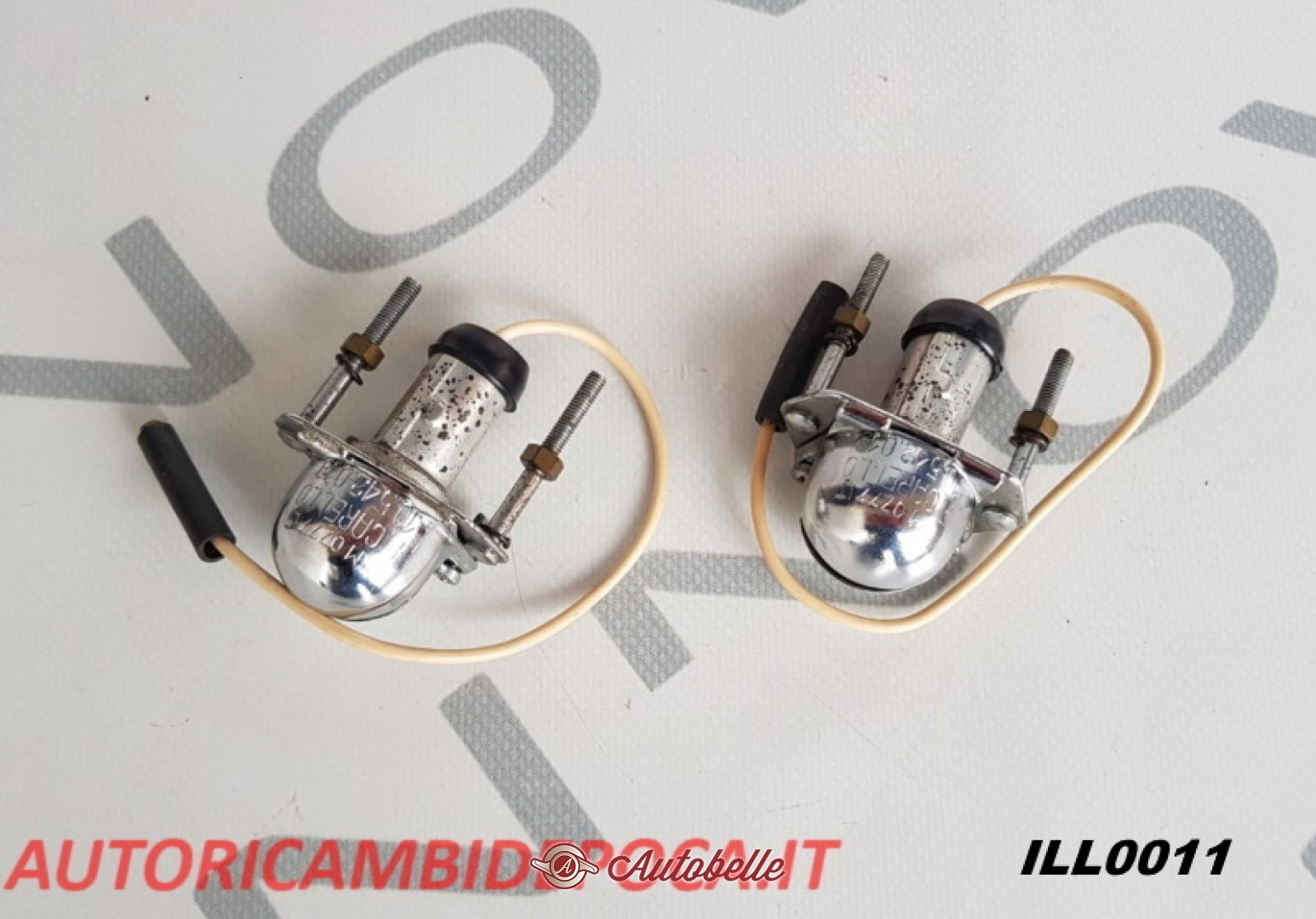 Coppia luci targa per Alfa Romeo Giulia, Giulietta Sprint Carello con supporto lampadina in metallo, attacco filo e connessione originale d'epoca