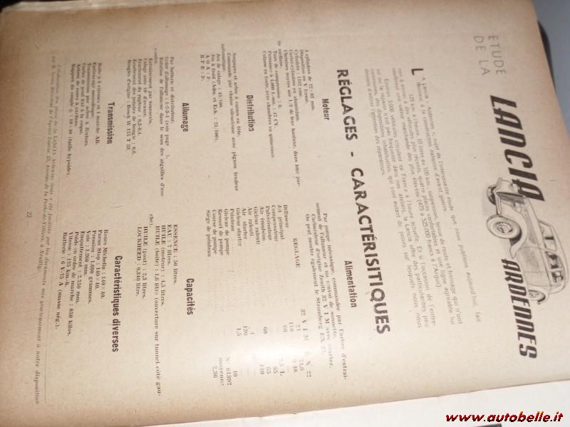 Le pagine del manuale originale d'officina della Lancia Ardennes con le spiegazioni per lo smontaggio e rimontaggio di tutte le parti meccaniche, compreso l'impianto elettrico,corredato delle tavole splicative, dato che la Ardennes ere la Aprilia assemblata in Francia il manuale è valido anche per l'Aprilia 1° serie e per quasi tutte le lavorazioni delle altre serie.