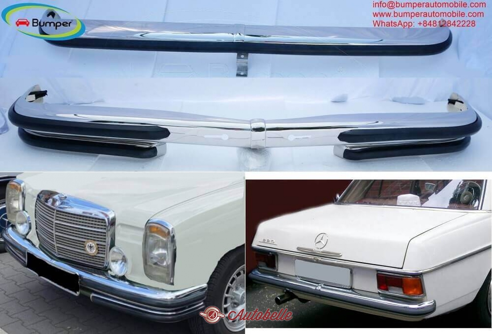Besides this bumper, I also have bumpers Mercedes W114 W115 coupe, Sedan S1, W121 190SL, 300SL, W107, W108, W111 Coupe and Sedan, W113, W120 W121, W180 and some other types Mercedes.
