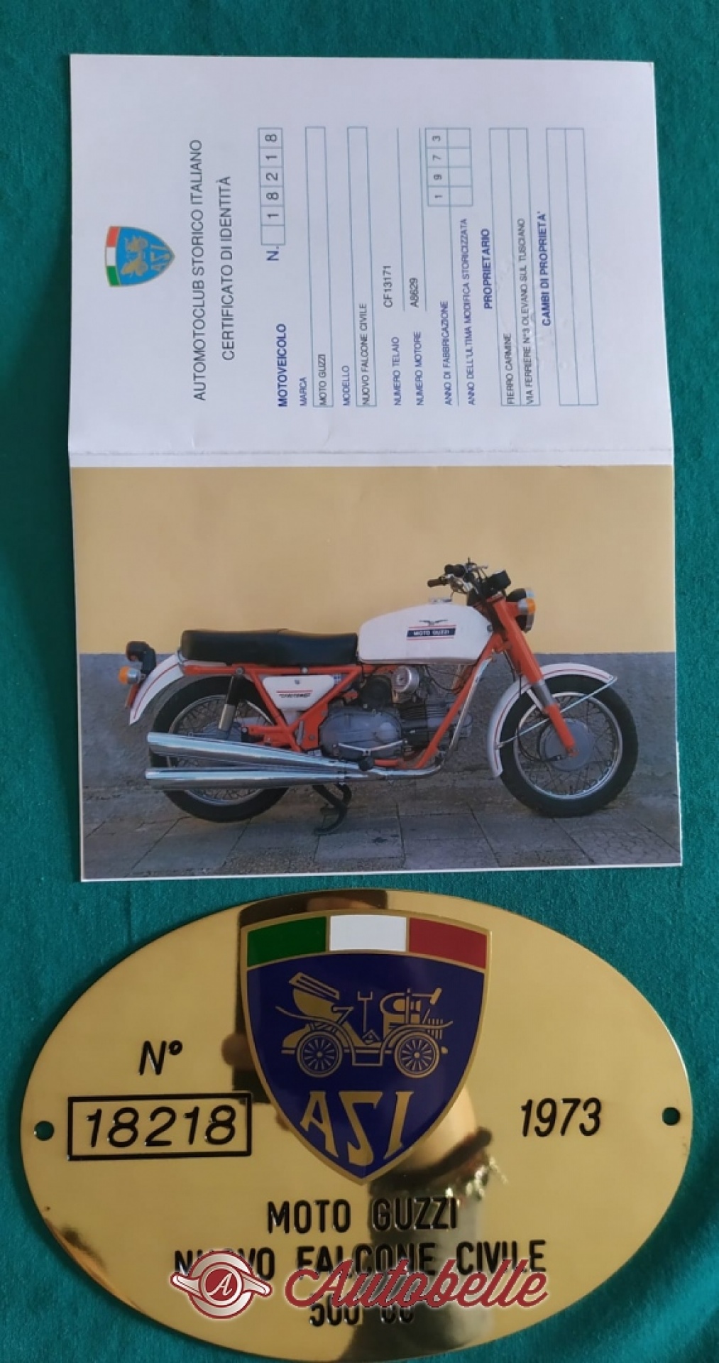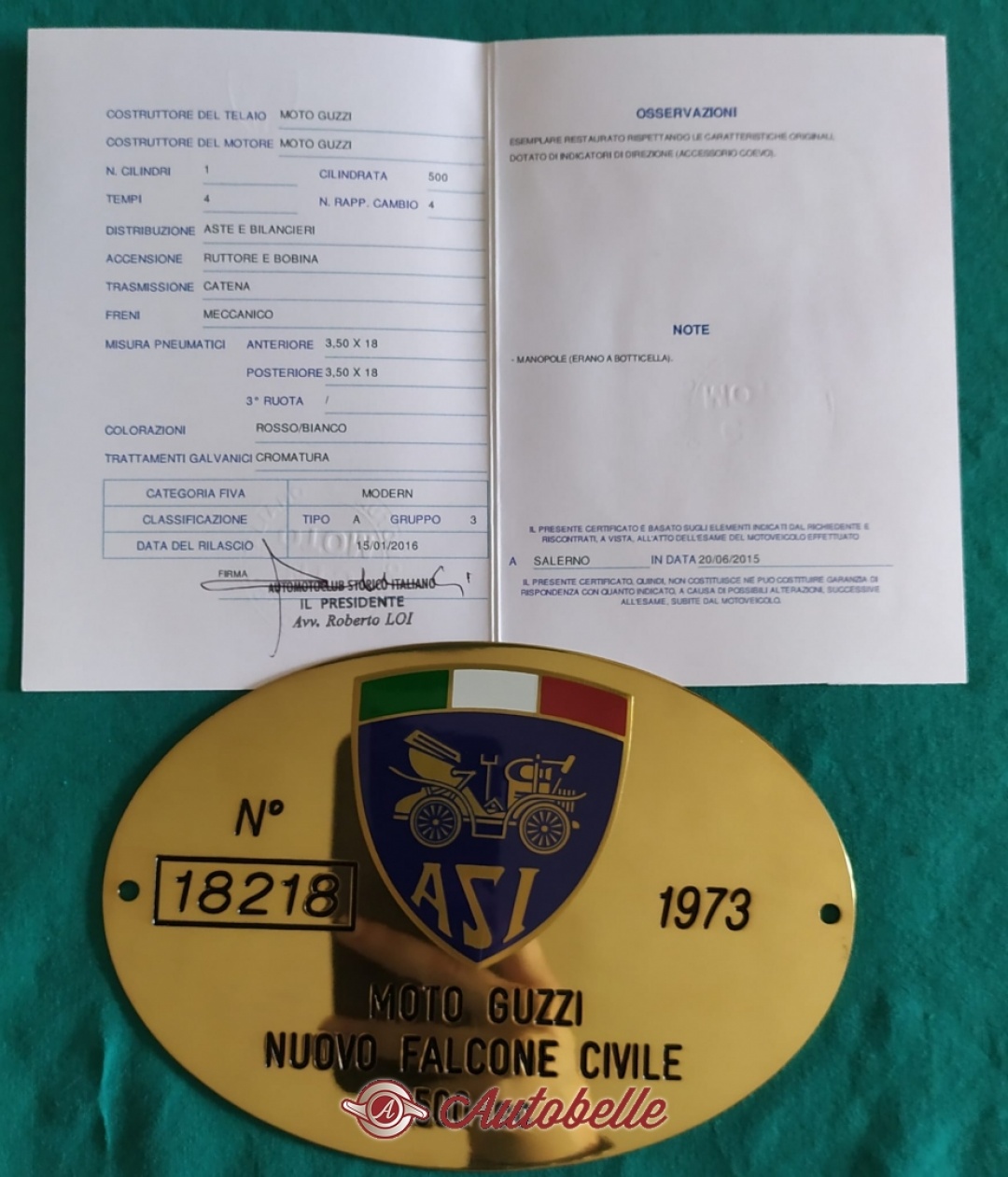 Vendo Moto Guzzi Nuovo Falcone civile 500 del 1973, con doppia targa FMI e ASI, serie numerata, al prezzo di 4950 euro.