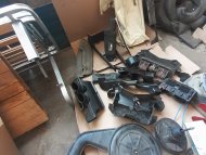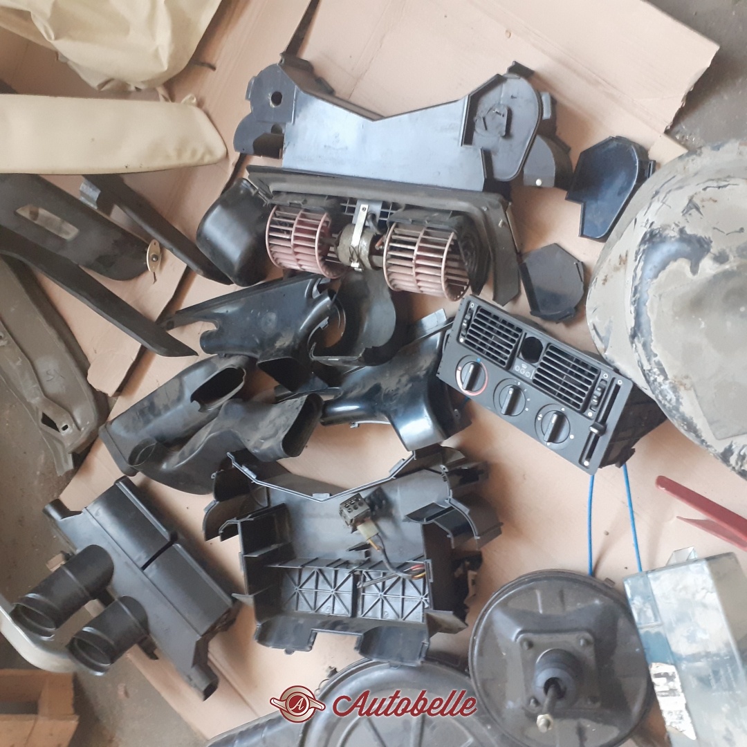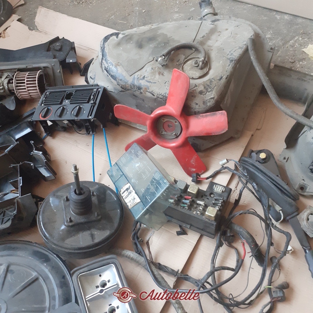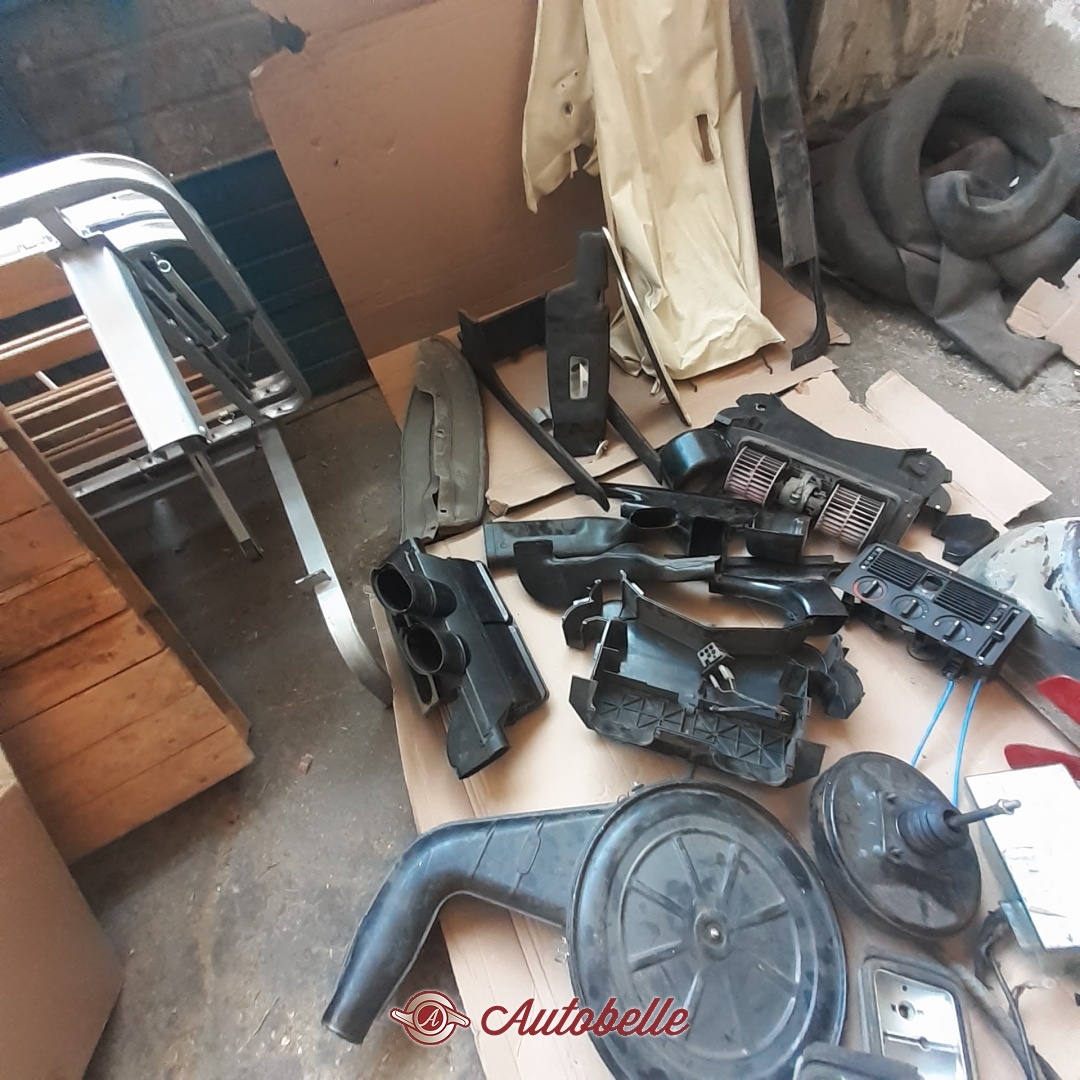 Per BMW E 21 cedo in blocco le seguenti parti: - Serie completa vetri (verde), Parabrezza, Lunotto, vetri scendenti, vetri posteriori - Ossatura del rivestimento anteriore - Serbatoio (doppio) - Radiatore - Piantone sterzo con chiave - Volante originale - Gruppo tergicristallo - Gruppo completo riscaldamento - Centralina elettrica con fusibili - Ventola e vaschetta raffreddamento - Servofreno, pompa freni e correttore di frenata - Leva freno a mano - Leva del cambio con supporto - Scatola filtro aria - Moquette verde pavimento - Moquette nera del baule - Cielo interno - Alette parasole - Coppia cinture di sicurezza - Corpo fari posteriori (senza trasparenti)