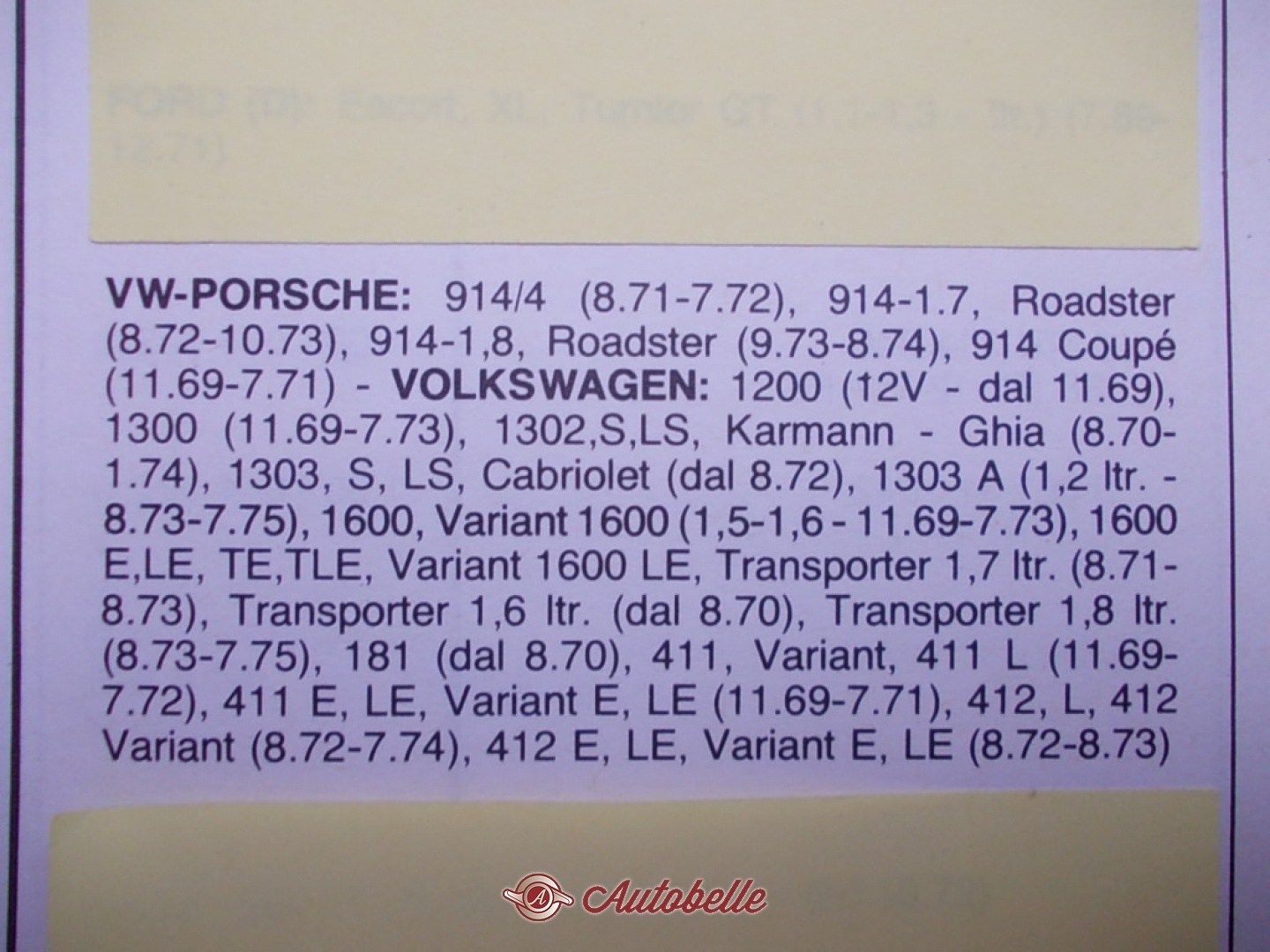 | Tipo veicolo | Ricambio |