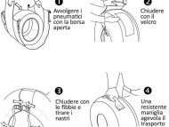 L'utilizzo e' semplicissimo : e' sufficiente avvolgere la borsa attorno al pneumatico , la chiusura e'' garantita da una larga striscia di velcro mentre un tessuto laterale con chiusura protegge i cerchi .