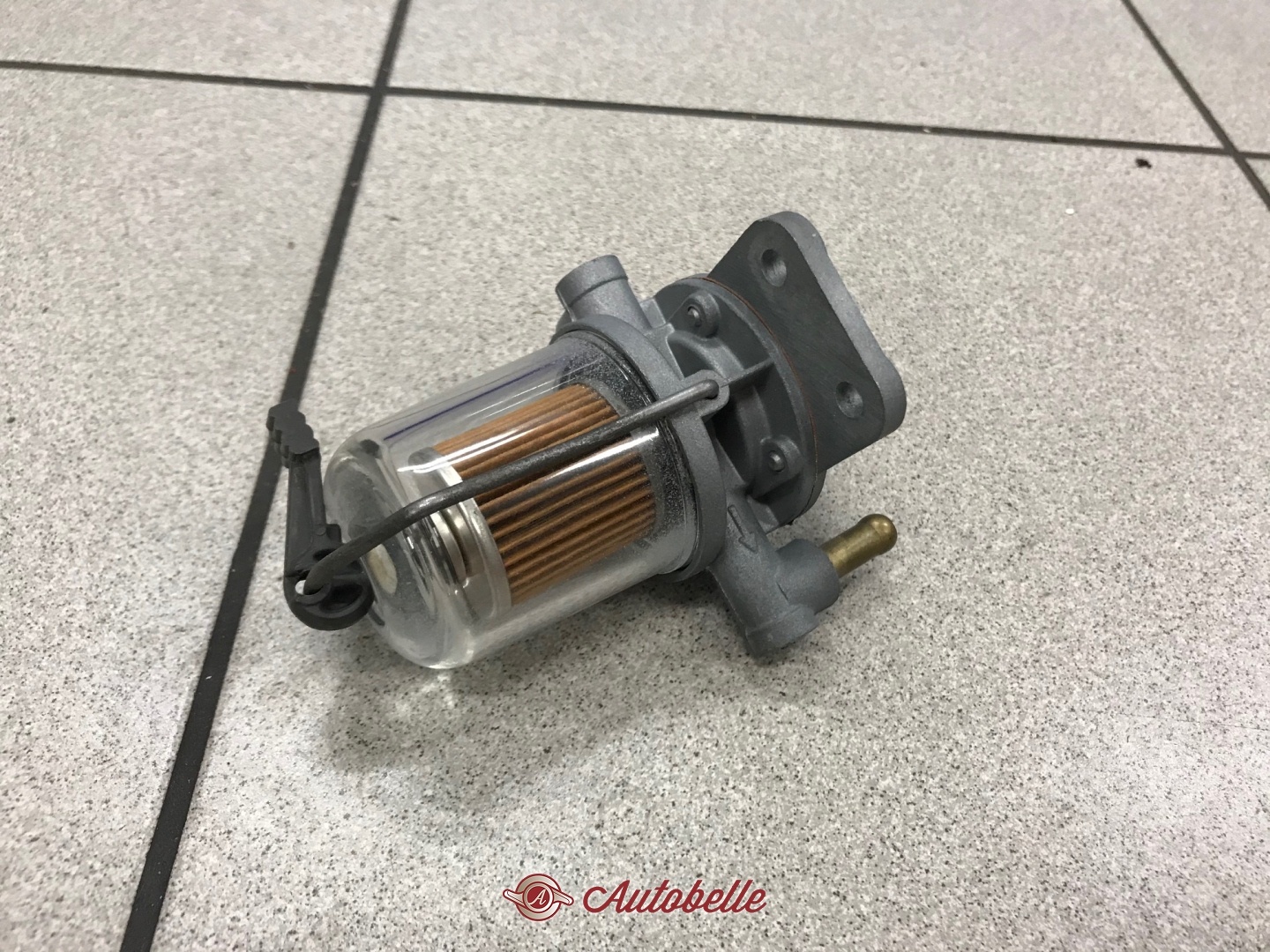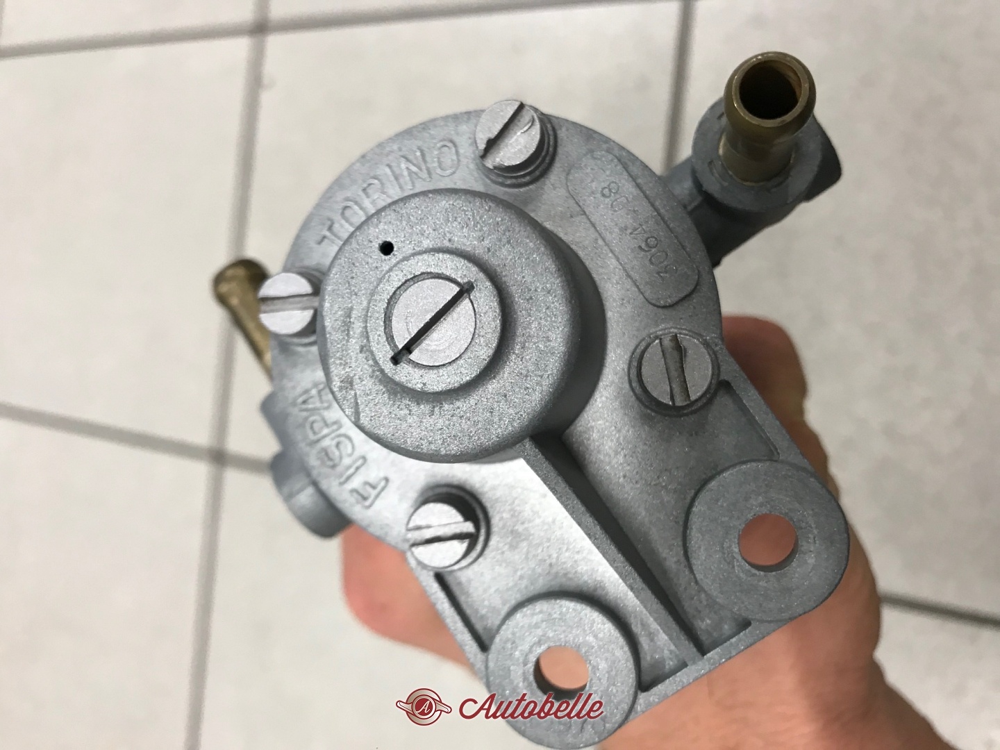 Regolatore di pressione benzina per auto d'epoca con alimentazione a carburatori, adatto a molti modelli anni 70 e 80, era montato sulle Alfa Romeo di quegli anni. Raccordi fissi e bicchiere in vetro, adatto anche a Ferrari e Lancia, Maserati ecc..