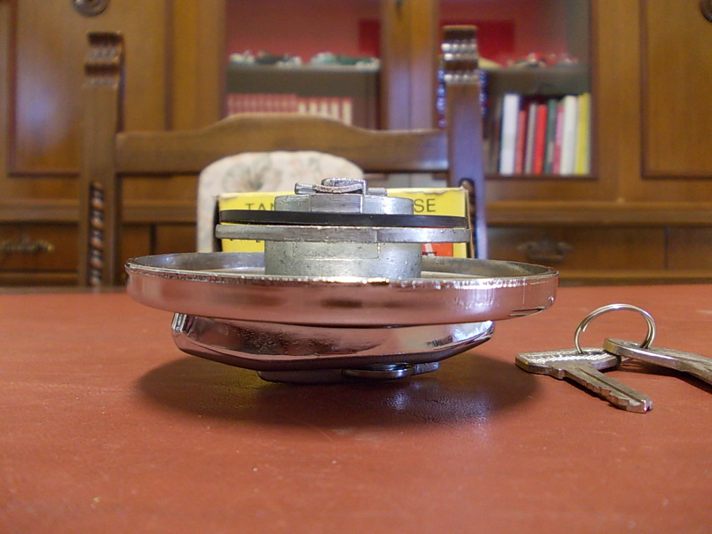 Per Ford Escor MK I,vendo tappo con chiave,in acciaio cromato,per serbatoio carburante.