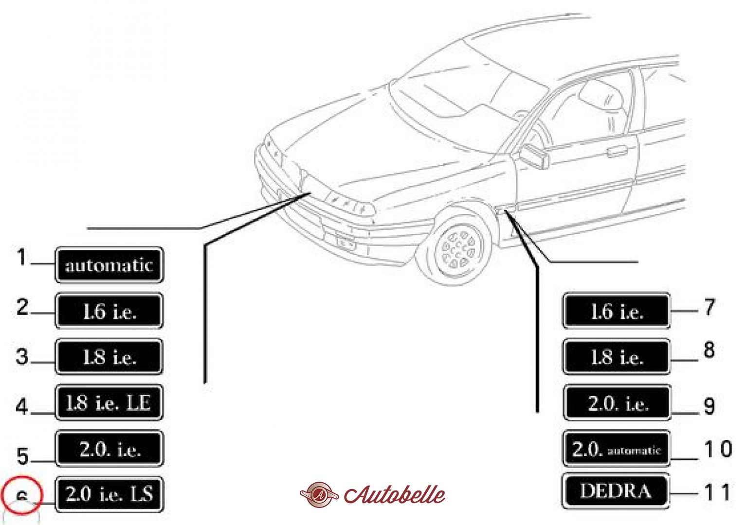 Targhetta mascherina anteriore Lancia Dedra 2.0 ie LS 82486364