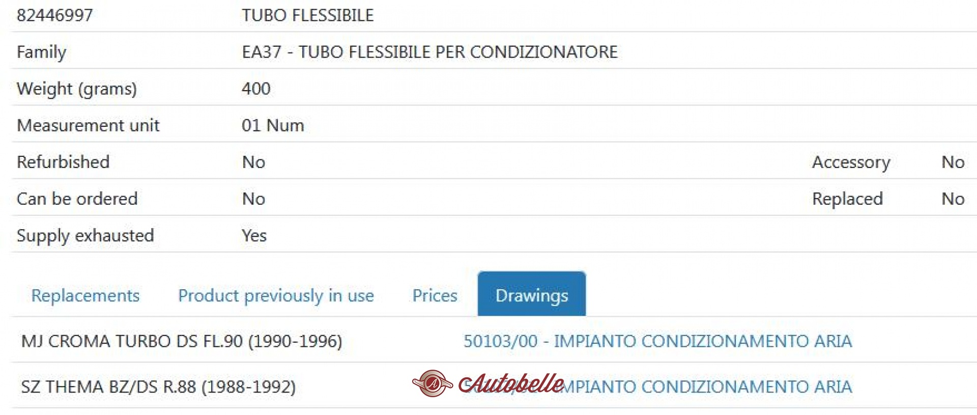 Vendo tubo condotto flessibile aria condizionata Lancia Thema/Fiat Croma --BLOCKED--7 , fondo di magazzino , € 80 più spedizione .