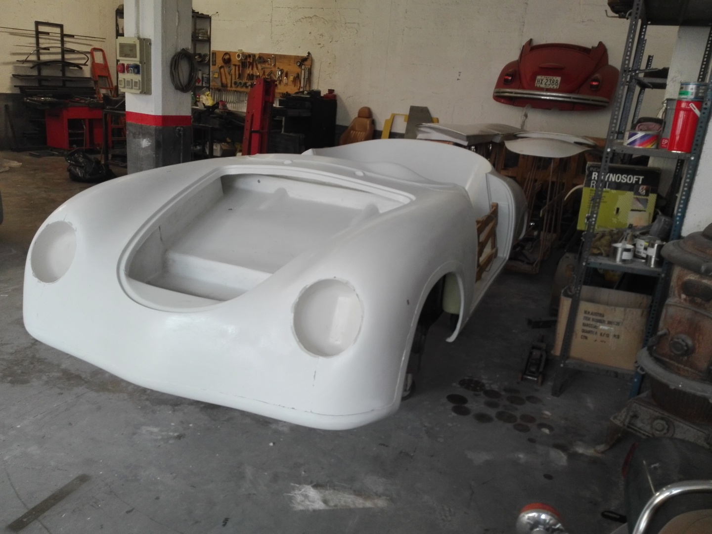 scocca rifinita al gelcoat,completa di cofano anteriore,cofano posteriore,portiere,paraurti,vasca anteriore.