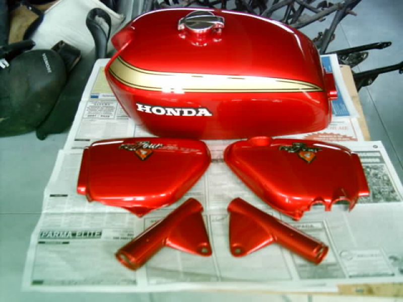 vendo completo serbatoio fianchetti riverniciati dall'unica ditta in italia autorizzato hondafour e mai usati reggifaro mai usati nuovi il serbatoio e' completo di rubinetto e tappo ed i finachetto sono completi di scritte si valuta anche permuta con vostro vecchio completo , eventualmente per il serbatoio si puo' dare anche senza tappo e rubinetto , --BLOCKED-- riccardo
