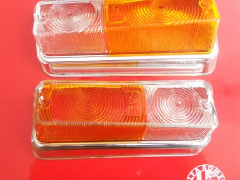Per Alfa Romeo 2000 Berlina coppia trasparenti per fanalini anteriori produzione Olsa. Oggetti originali dell'epoca, nuovi mai installati e conservati in…ID: 274579 | 02/05/2018