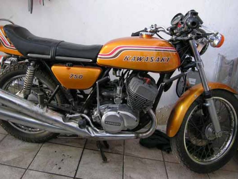 Kawasaki mach 4 750, color oro, 1972, ottime condizioni, 21.000 km, originale in ogni particolare, radiata d’ufficio ma con estratto cronologico per la…ID: 55771 | 25/07/2008